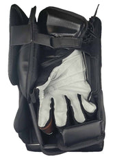 CCM has incorporated a heat-laminated dual-density foam blocking board with PE that provides powerful rebounds and directional control off the blocker face. Additionally, there is further HD foam wrapped in D30 Speed Skin for optimal impact protection around the fingers. Lastly, the sidewalls are reinforced with X-Stiff foam and have curved high-impact finger protection.